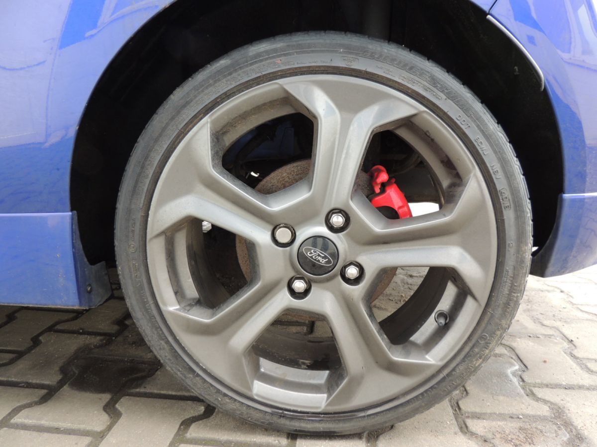 Komplet felg 17' pochodzi Forda Fiesty MK VII po lifcie w wersji ST z 2016 r. Silnik 1.6 16V Ecoboost 182 KM. Model produkowany od 2008 do 2017 . Lifting wprowadzono w 2012 r. Lakier Spirit Blue Met ( BCYE, VC ).