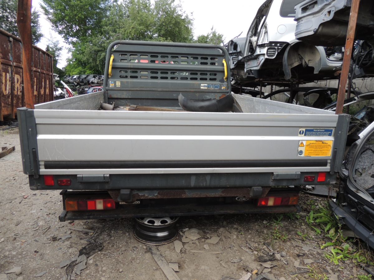 Paka z trzema otwieranymi burtami aluminiowymi pochodzi z Forda Transita MKVII z 2009 r. Nadwozie podwójna kabina, dubelkabina z skrzynią ładunkową. Wymiary 290 x 215 x 40 (cm) . Na pomocniczej ramie aluminiowej. Podłoga do wymiany, lub naprawy.
