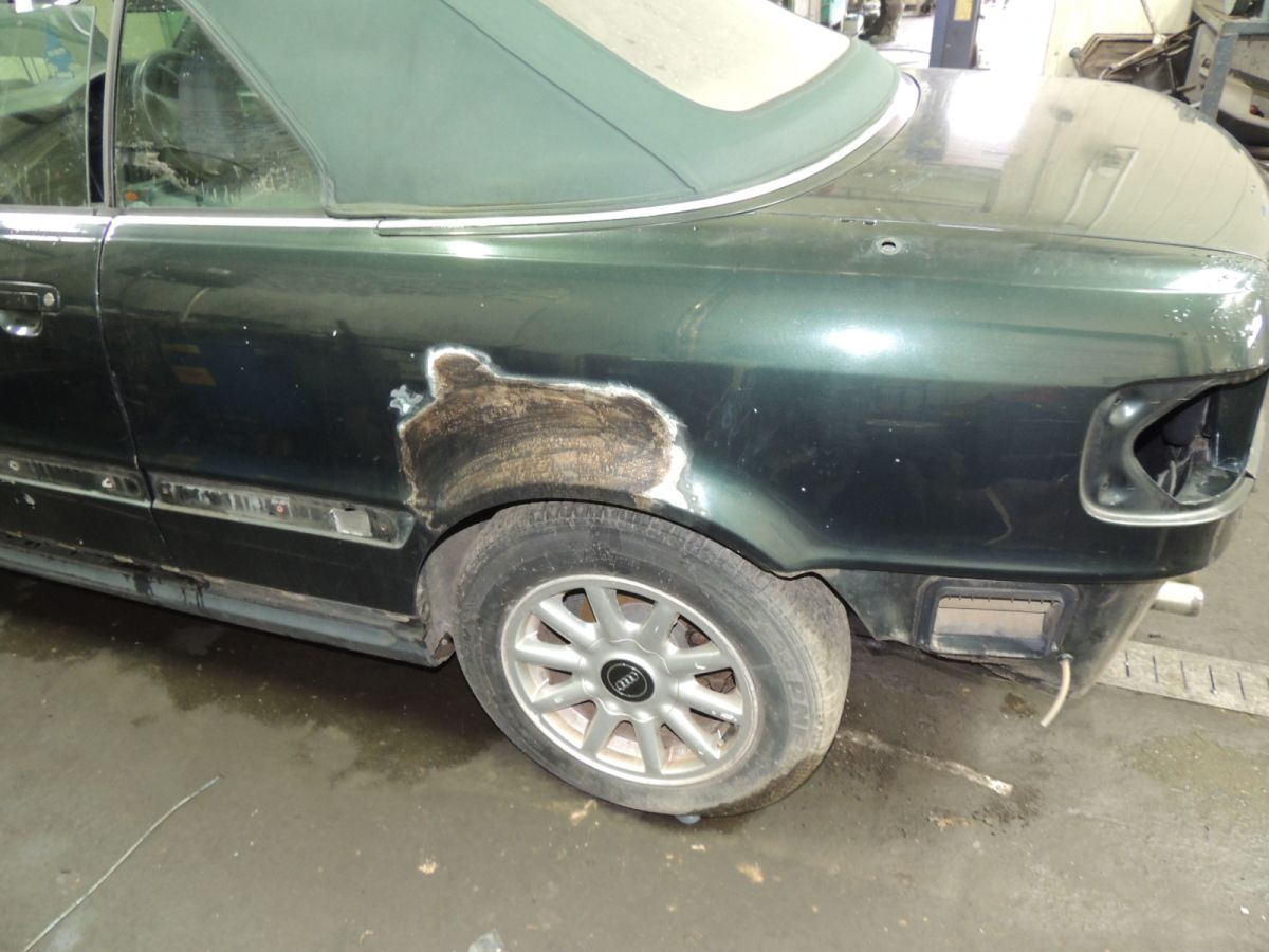 Element pochodzi z Audi 80 B4 z 1994 r. Z silnikiem 2,6 V6 o mocy 150 KM. Skrzynia automatyczna. Dach otwierany manualnie. Model produkowany w latach 1991 - 2000. Kolor zielony. Błotnik po blacharce.