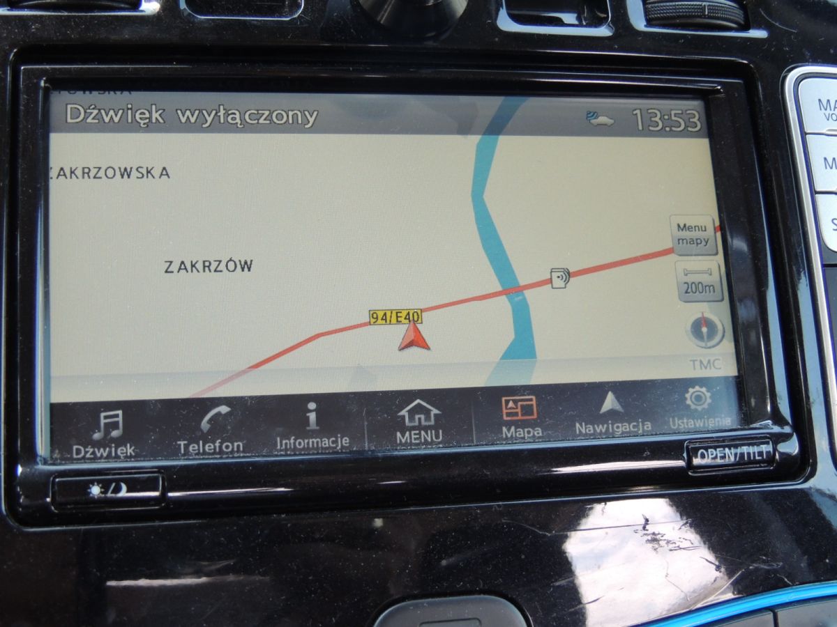 Radio nawigacja pochodzi z Nissana Leaf I z 2017 r. Pojazd z napędem elektrycznym produkowany w latach 2010 do 2017. Potem Leaf II. Kod lakieru QAB perłowy.